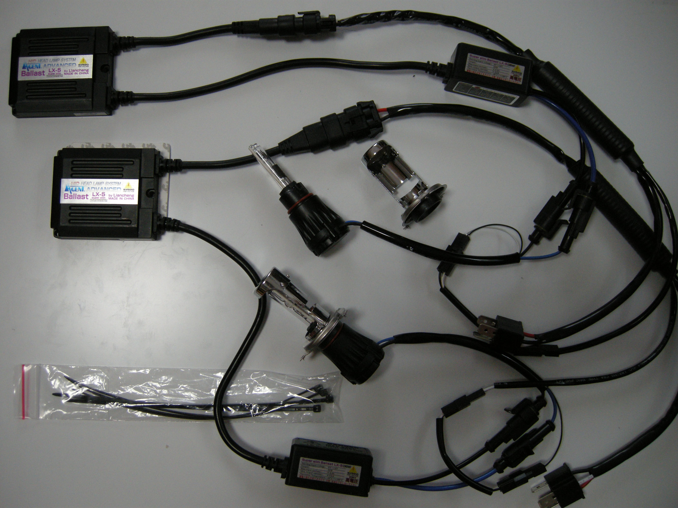 ■V45(35W)バラスト(2個)・Bi-2n/H4(Low/Hi伸縮切替)movingバーナー(2本)・H4movimg専用配線セット・マニュアル・結束バンド・バラスト取付金具&バラスト取付両面テープ