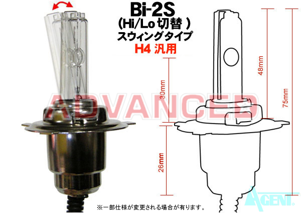 Hi Quality 35W/Bi-2S/H6(PH7.PH8 or H4台座付き共通) swing(L/H切替)バーナー (H4専用リレー配線付) 1セット(1灯分)