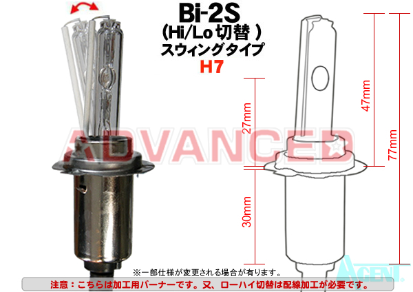 Hi Quality 35W/Bi-2S/H7(加工用)swing(L/H切替)バーナー(リレー配線付セット)1灯分