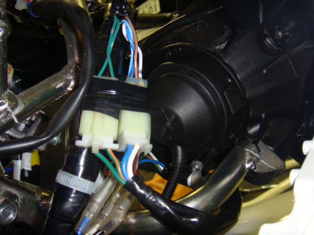 - 車体に割り込ませる3本線はすべて取付ました。(アース線も車体側オレンジ/グリーン)